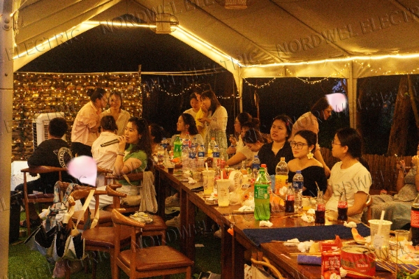 Menjelang malam, kelompok tersebut berkumpul untuk menikmati pengalaman barbekyu kolaboratif. Anggota tim bergantian memanggang sementara yang lain menyiapkan lauk, menjadikan persiapan makanan sebagai kegiatan tim yang alami. Pengalaman memasak dan bersantap bersama ini secara alami memfasilitasi percakapan lintas departemen dan mempererat hubungan di tempat kerja.